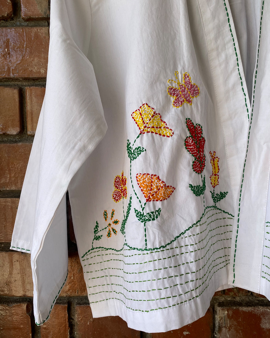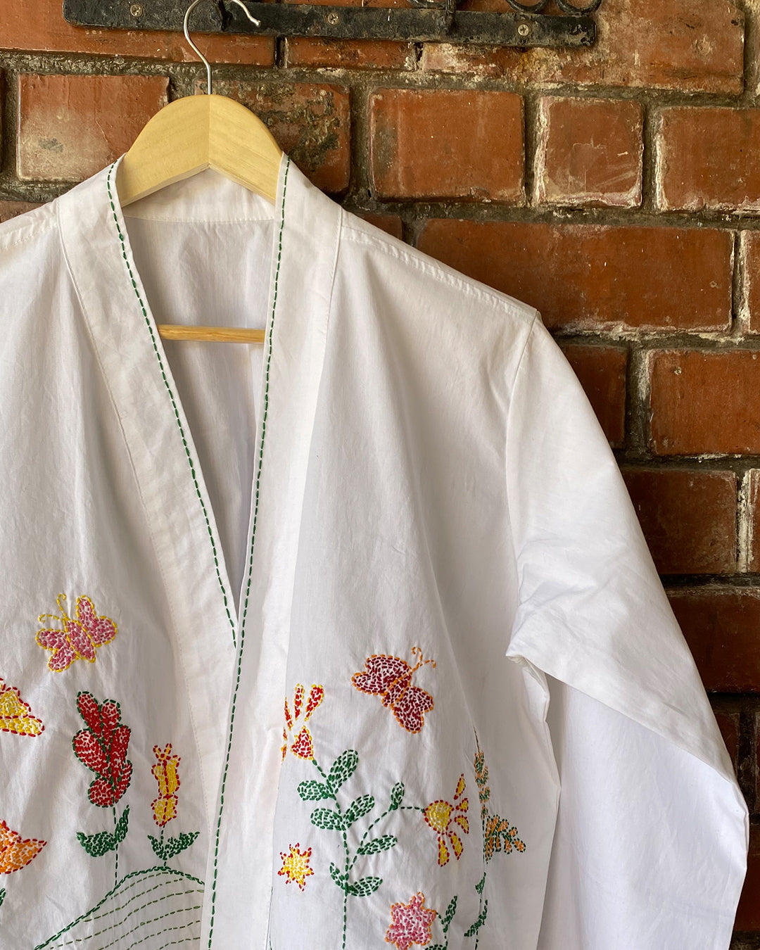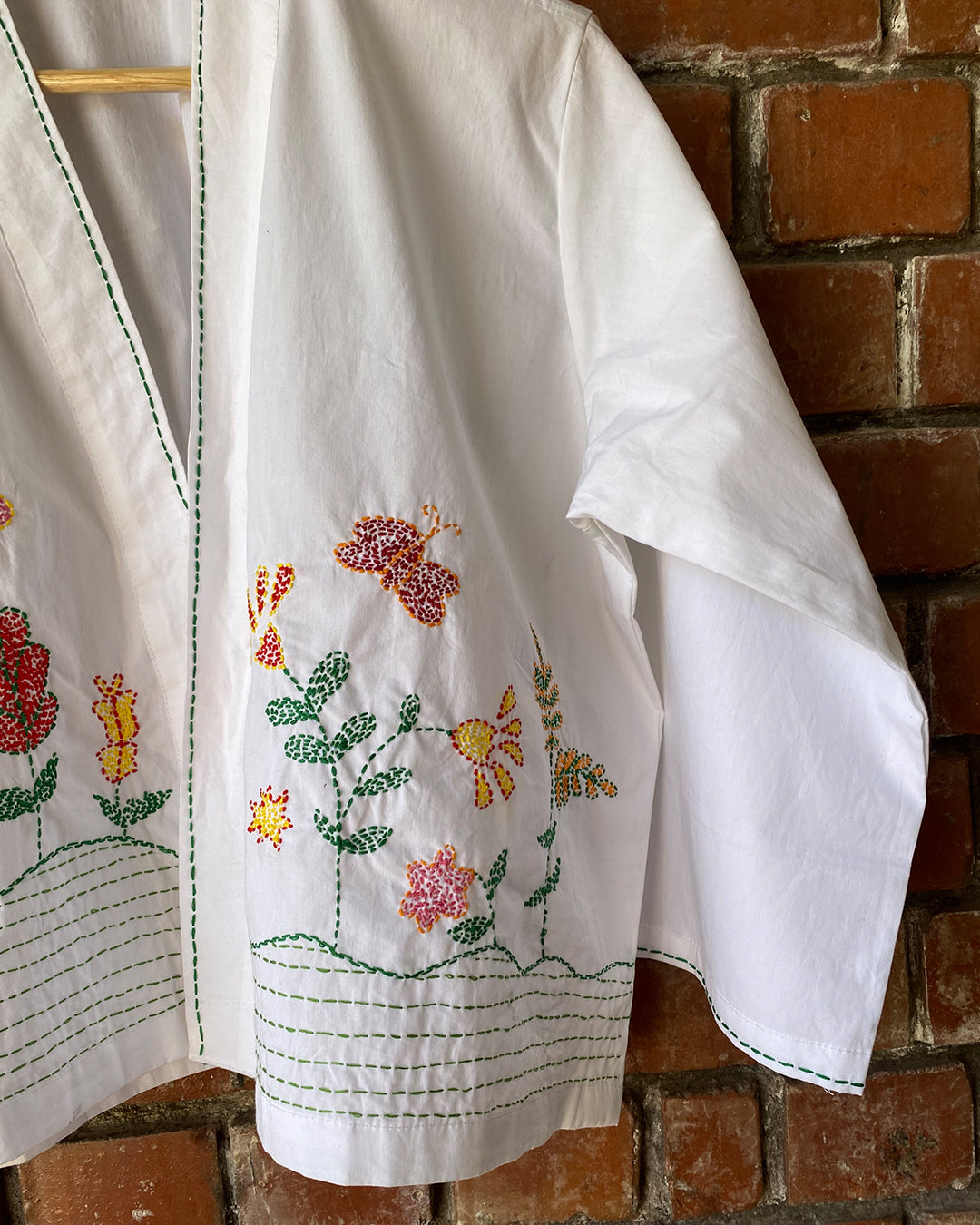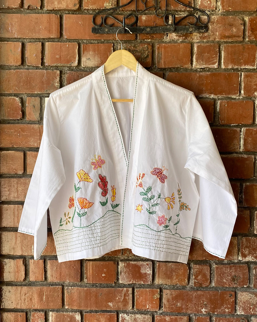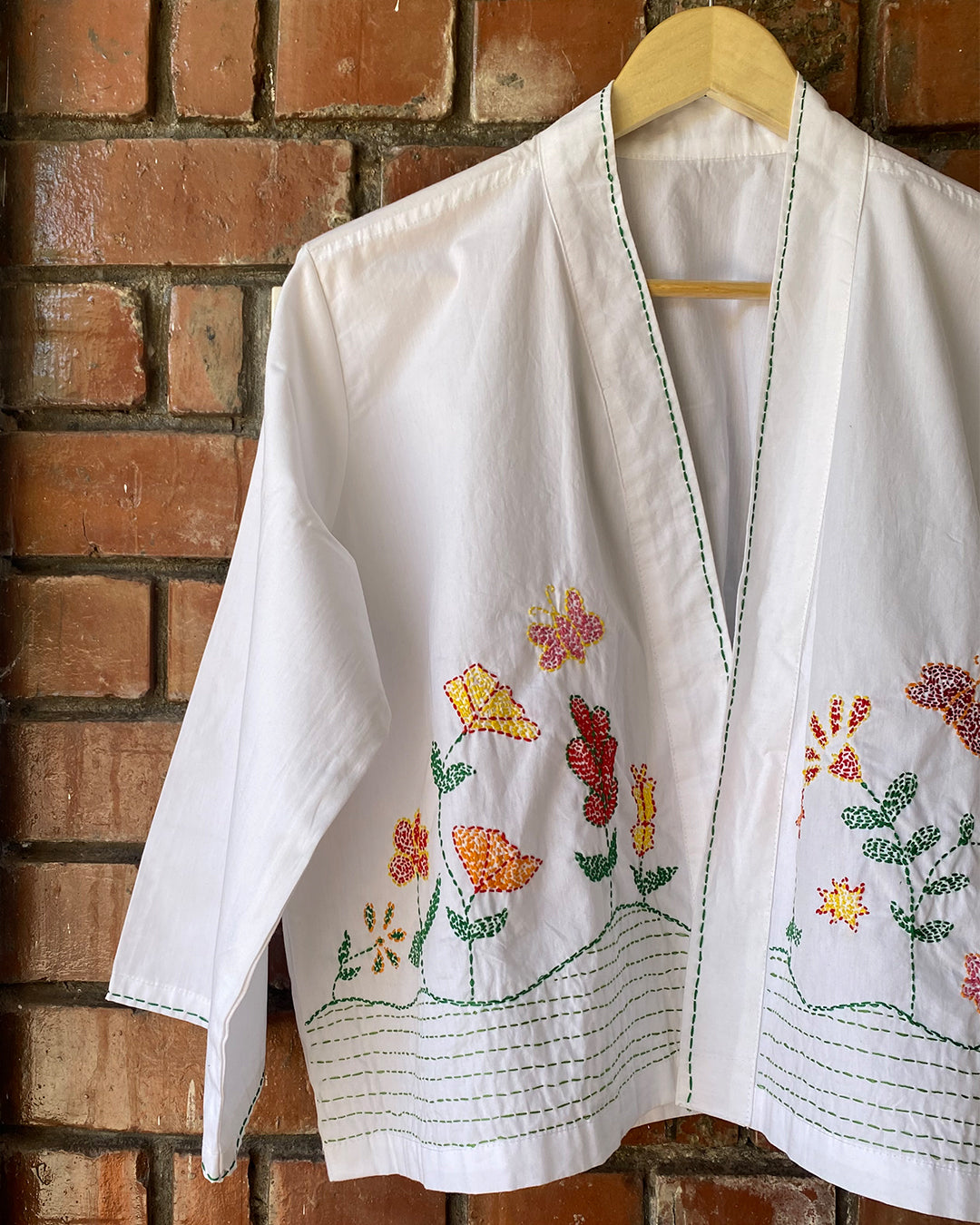 The Gul Shrug features intricate floral motifs with delicate running stitches, adding a touch of heritage and artistry. Lightweight and relaxed, it’s perfect for layering over dresses, kurtas, or tops, making it a versatile, timeless addition to your wardrobe.